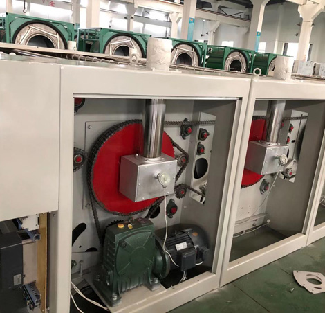 一主輥筒和副輥筒采用差動設(shè)計(jì),有效提高織物熨燙的平整度,同時(shí)也解決了目前普通燙平機(jī)的兩頭皺折和小布草熨平質(zhì)量的難題。